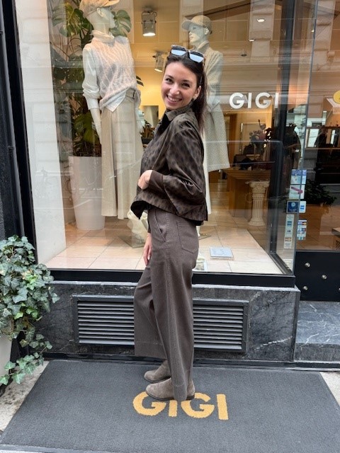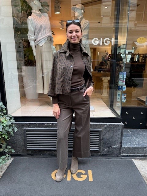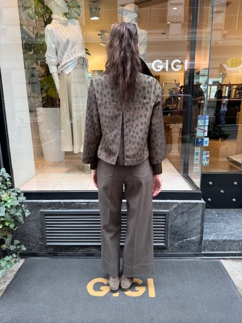 Kurz geschnitten und mit raffinierten Details versehen, ist die Akris Punto Jacke im Leo-Muster ein vielseitiges Statement-Piece. Sie passt perfekt zu schmalen Hosen und eleganten Business-Looks, wirkt aber ebenso lässig zu Jeans und Sneakers. Der kürzere Ärmel macht sie besonders in der Übergangszeit angenehm tragbar und unterstreicht den modischen Charakter.