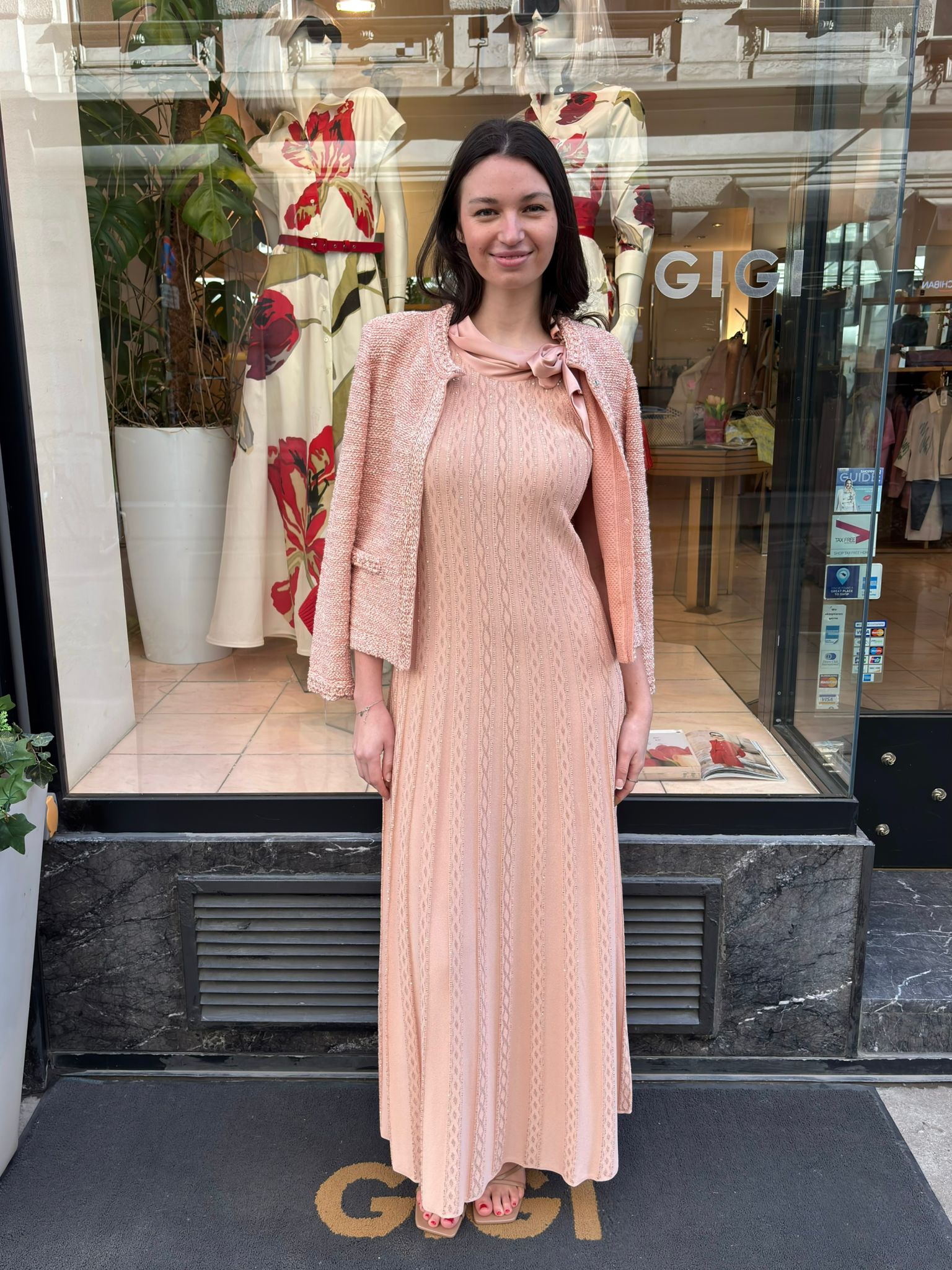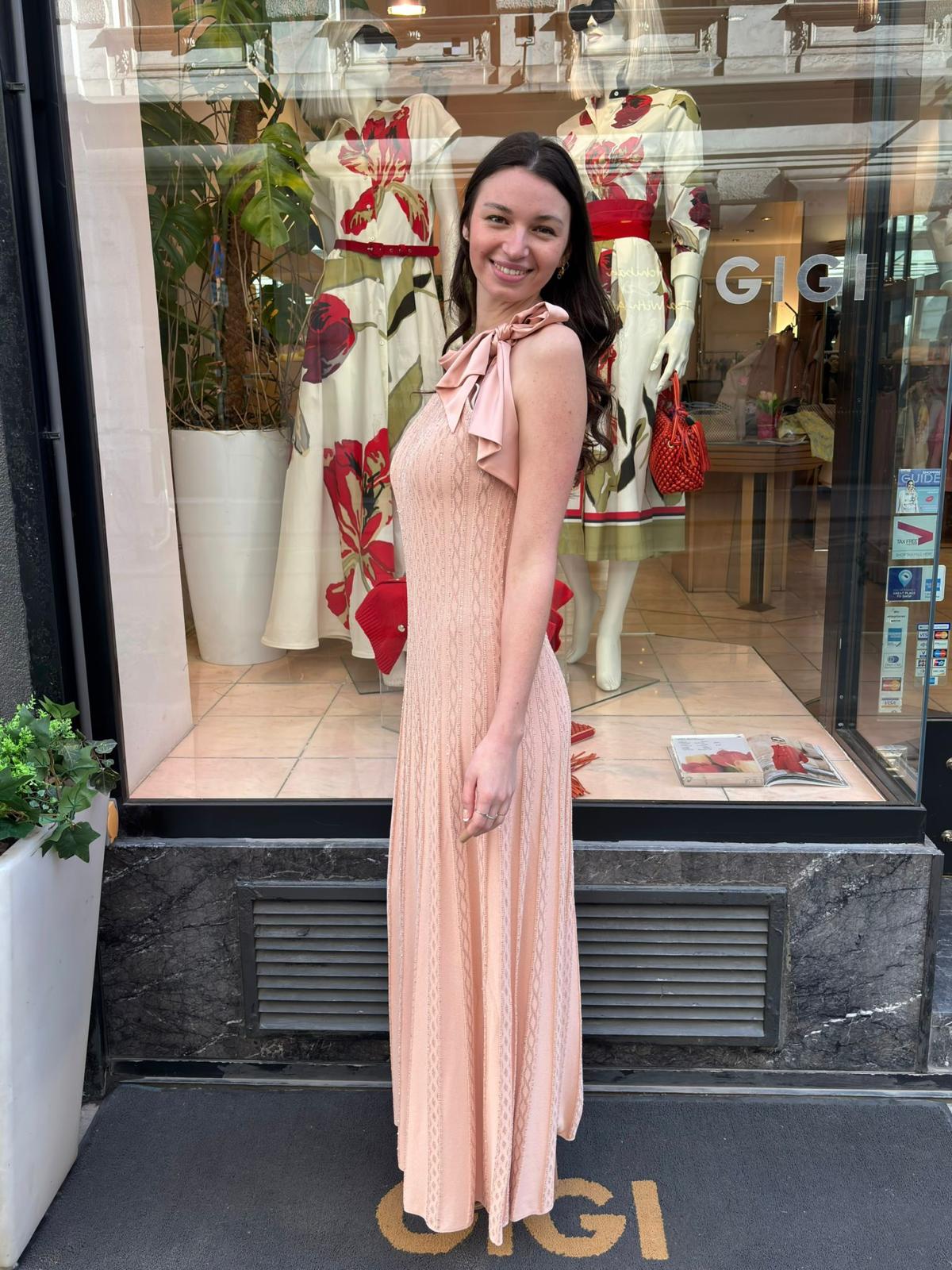 Dieses elegante Strickkleid von D.Exterior vereint feminine Leichtigkeit mit feiner Strickkunst. In einem zarten Lachston gehalten, wirkt das Modell besonders weich und schmeichelhaft. Passend dazu ist auch eine abgestimmte Jacke erhältlich, die den Look perfekt ergänzt und gemeinsam ein harmonisches Ensemble bildet.