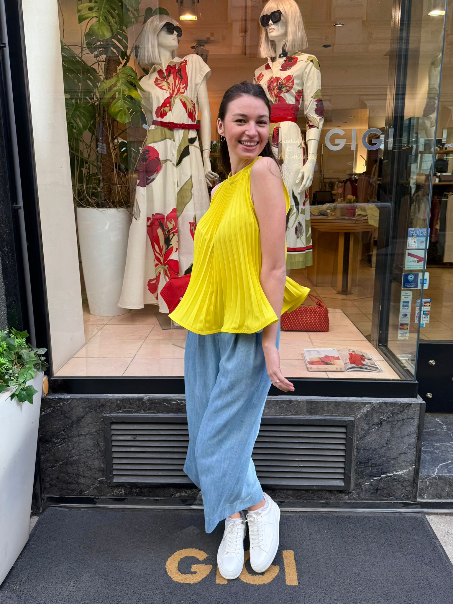 Ob lässig im Alltag oder elegant kombiniert für besondere Anlässe – dieses Plissee-Top lässt sich vielseitig stylen und bringt frische Leichtigkeit in jeden Look.