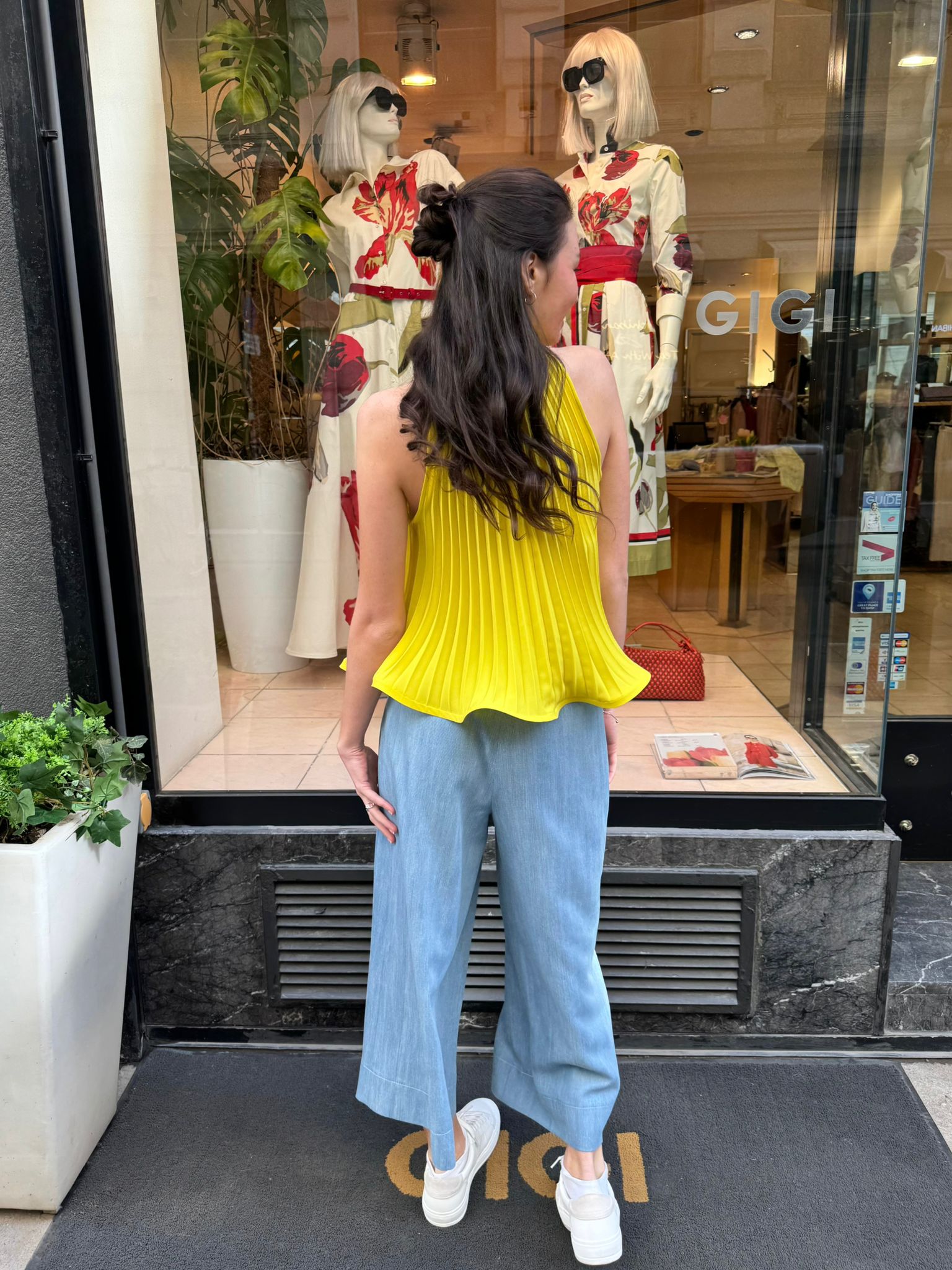 Mit diesem Top von Akris Punto setzen Sie ein stilvolles Statement in Ihrer Sommergarderobe. Das Modell überzeugt durch seine feine Plissee-Struktur, die dem Design eine moderne und zugleich feminine Ausstrahlung verleiht.