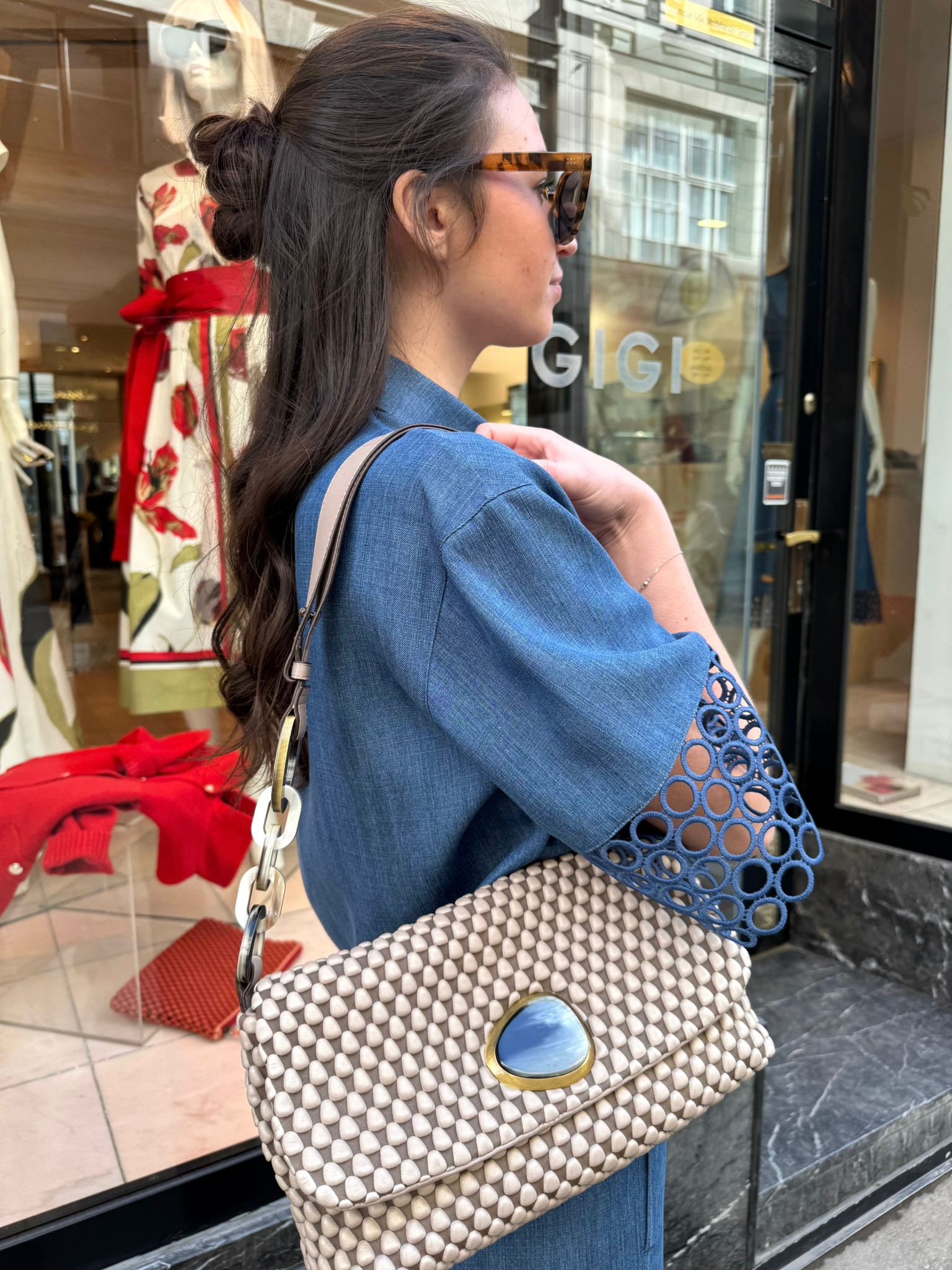 Mirage ist eine wunderschöne Tasche von Tissa Fontaneda im klassischen Bubbles Design und Ketten Detail aus Horn am Henkel. Jetzt in der Farbe Ash Grey erhältlich. Elegant, chick und immer ein Eyecatcher – diese Tasche ist der perfekte Begleiter für jeden Anlass.